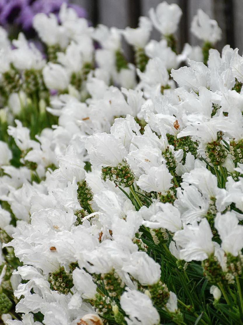 A robust and fast-growing selection with spectacular clear white wings that sit beautifully above compact and well-behaved foliage. The stylish combination of white flower spikes and bracts with grey-green foliage makes this an ideal selection for formal gardens, pot displays and landscapes.